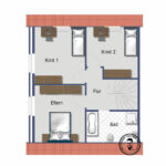 Dachgeschoss: Hier sind zwei weitere Wohnräume vorhanden, der idealerweise als Eltern-, Kinderschlafzimmer aber auch als ein Arbeitszimmer genutzt werden könnte. Weiterhin befindet sich die Gastherme hier in einem Abstellraum Platz und sorgt für die Beheizung des Hauses.