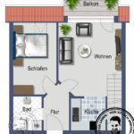 Rechter Hand gelangt man in das lichtdurchflutete Wohnzimmer, mit seinem großzügigen Südwestbalkon und halboffener Küche. Vom Wohnzimmer aus hat man Zugang zum zweiten Schlafzimmer im Spitzboden.